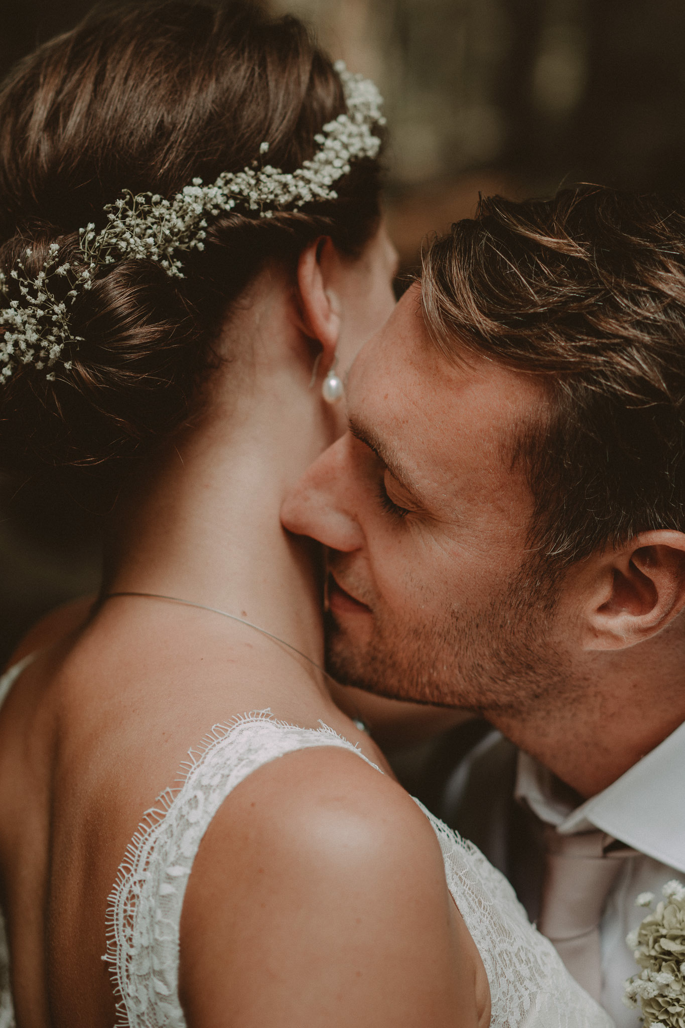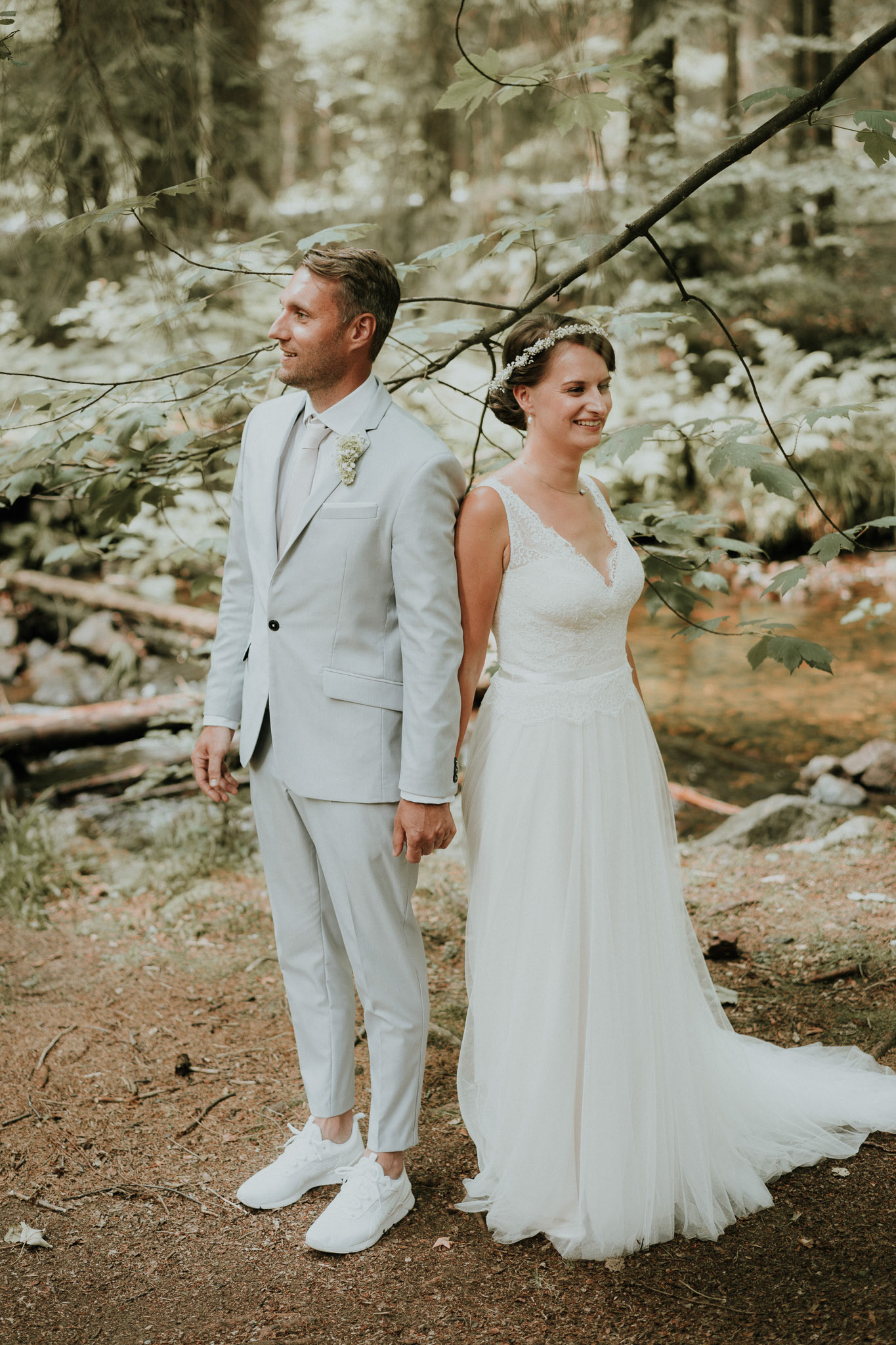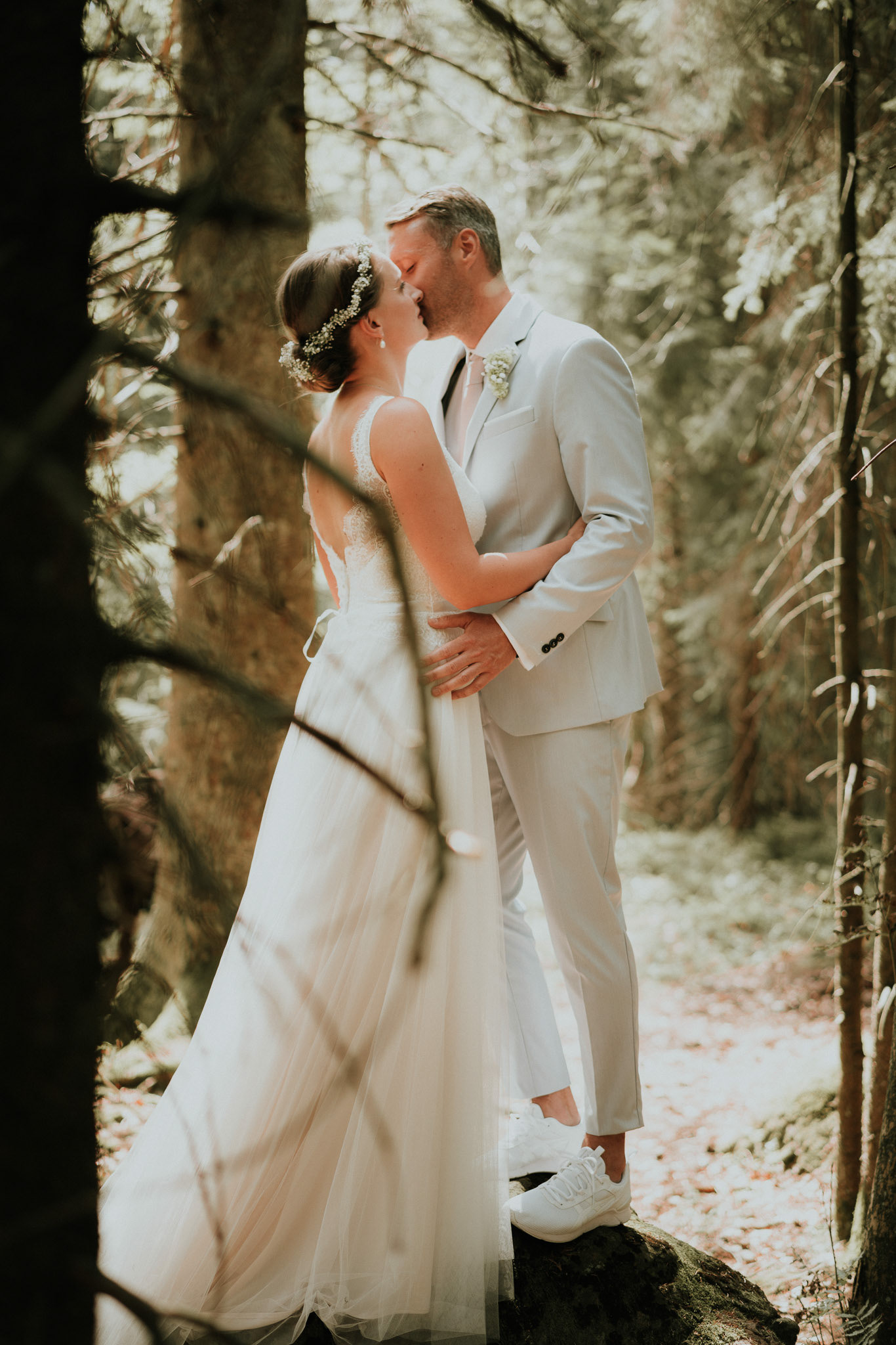 Josephines und Tobias' Hochzeitsfotos im Wald nahe der Brockenwegschanze in Braunlage im Harz.